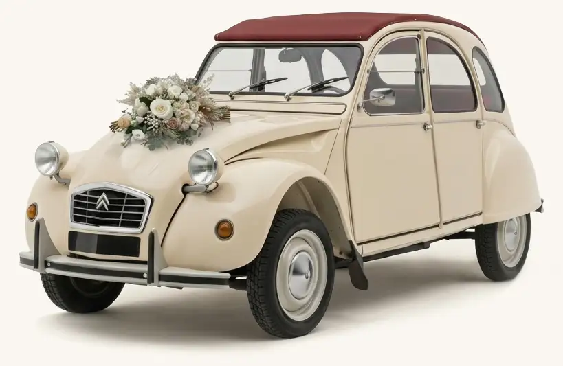 Véritable icône de l'art de vivre à la française, la 'Deuche' apporte cette touche d’authenticité et de nostalgie qui transforme vos déplacements entre la mairie, l'église et votre lieu de réception en un moment de pure complicité.